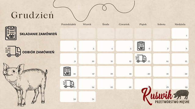MIESIĘCZNY TERMINARZ DOSTAW