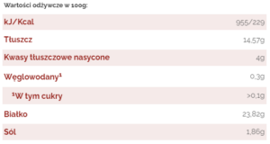 Skład: Mięso Wieprzowe, Mięso Wołowe, Jelita Wieprzowe, Sól, Pieprz, Czosnek, Sól Peklowa(e250) z 111g Mięsa otrzymujemy 90g produktu